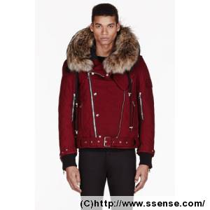 RED fur-trimmed QUILTED biker jacket