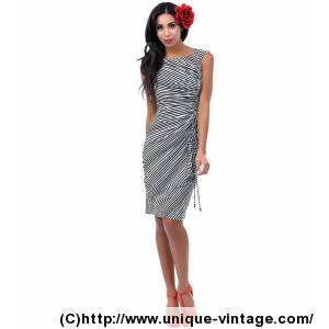 Black & White Optix Striped Gathered Wiggle Dress[Item#35517-TA254]