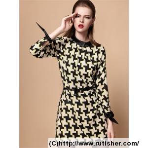 ヨーロッパとアメリカのヴィンテージプリント幾何学模様のドレス (077013314)