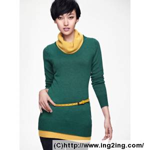 シンプルな雰囲気は、2つのタートルネックのセーターを偽って色をぶつけ出します。