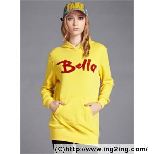 情侣时尚字母中长款套头连帽抓绒卫衣