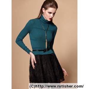 公主风羊绒毛织拼接蕾丝连衣裙 (074013312)