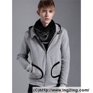 简约撞色镶边连帽卫衣