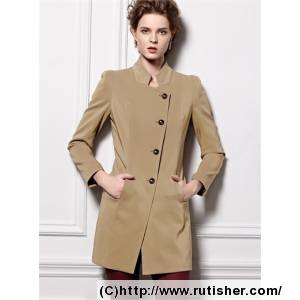 酷感线条斜开襟立领微弹力风衣 (070813401)