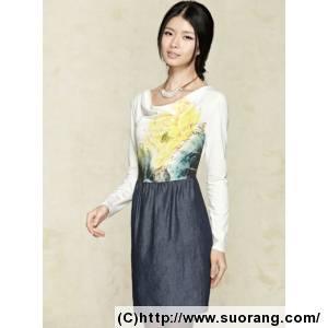 优雅水墨晕染柔美荡领连衣裙(187113338)
