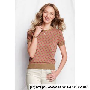 Women's Regular Short Sleeve Print Fine Gauge Supima Jewelneck Sweater