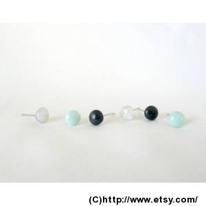 Tiny stud earrings set- Mint, Black, Glittery white- Set of 3- Polymer clay jewelry