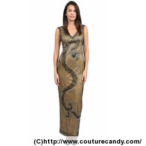 Sue Wong - Embroidered Dragon Column Dress in Black