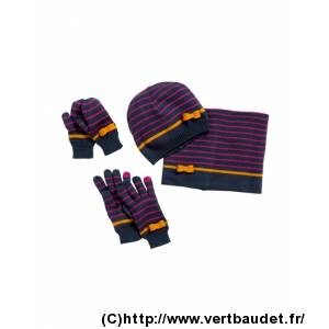 Ensemble bonnet + écharpe + gants/moufles fille
