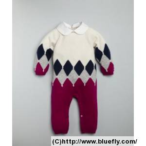赤ちゃんパープルとクリームハーレクインデザインカシミヤ襟付きワンシー
