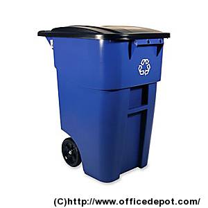 Rubbermaid® Square Brute® Big Wheel® We Recycle Container 50 Gallons 46 4/5 H x 23 3/10 W x 23 5/8 D Blue
