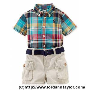 ラルフ ローレン 子供服 ベビーボーイズ 12-24 ヶ月 ボタンダウン チェック柄 シャツ&カーゴショーツセット