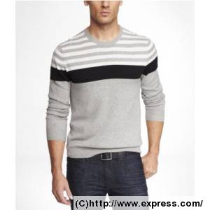 ストライプコットンクルーネックセーター