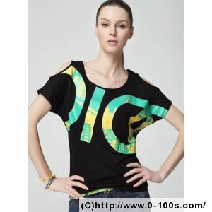 炫酷动感蝙蝠袖露肩女圆领短T