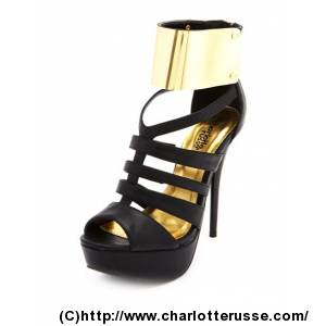 Caged Metallic Cuff Zip-Back Heel