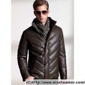 时尚新贵质感皮面拼麂皮羽绒服 商品号:(060813427)