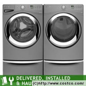 Whirlpool® Duet Steam 4.1CuFt Washer 7.4CuFt ELECTRIC Dryer with Pedestals in Chrome Shadow