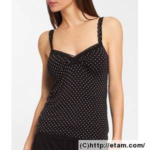 AMELIA POIS - Top imprimé pois décolleté dentelle