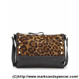 オートグラフ レザー レオパード プリント クロス ボディ バッグ