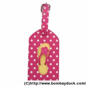 Bon Voyage Luggage Tag Pink Spots Flip Flop