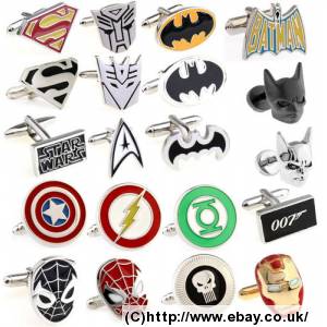 シルバー &ゴールドメンズスーパーヒーローノベルティウェディングカフリンク**無料P&P 英国の売り手**