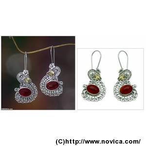 Balinese SwanSilver Swan Earrings with Carnelian and Citrine