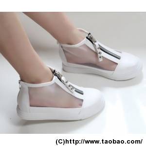 韩版夏季镂空靴帮女鞋 包邮2013新款凉鞋网面拼色拉链平跟休闲鞋