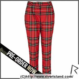 Red Rihanna tartan tapered trousers