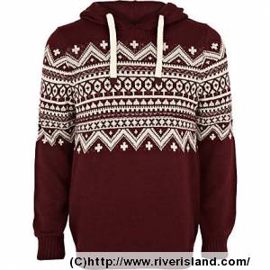 Red fair isle panel hooded jumper