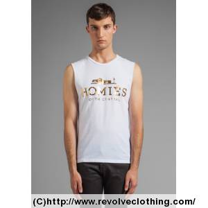 Add To Boutique Homies Muscle Tee in White/Gold Foil