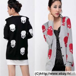 Mode Femme Cardigans Crâne Coller-V Tricot Pull Manche Longue Veste Manteau Coat