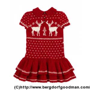 ラルフローレン半袖トナカイニットドレスレッドサイズ4-6X