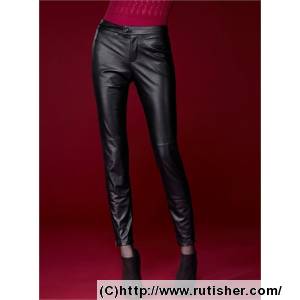 奢软绵羊皮拉链脚口修身长裤 (071012303)