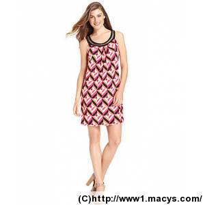 NYコレクション 小柄ドレス ノースリーブプリント装飾シフト