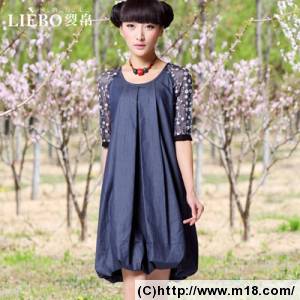 クラック新しい夏のドレス パッチワーク素材 デニム半袖ドレス 32150090 ケージスモーク。