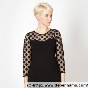 ブラック スポッテッド シアー スリーブ トップ