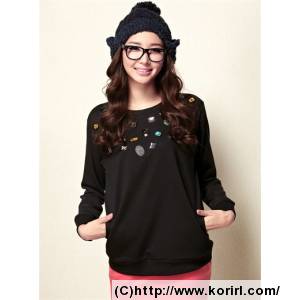 超韩版炫彩钉珠长袖套头卫衣