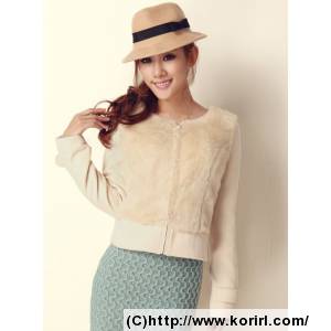 韩版修身前幅仿兔毛呢子小外套